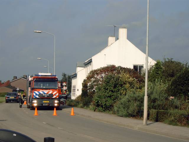 Bij toeval zien we een schoorsteen brand en bellen de brandweer.